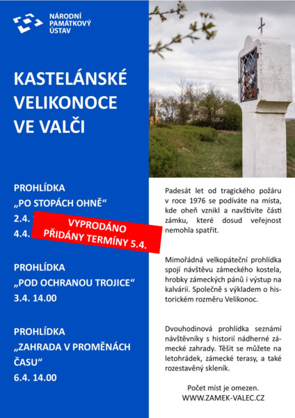 Mimořádná prohlídka propojí zámecký kostel Nejsvětější Trojice, rodovou hrobku i valečskou kalvárii. Společně se vydáme po stopách historického a kulturního významu Velikonoc v barokní krajině.